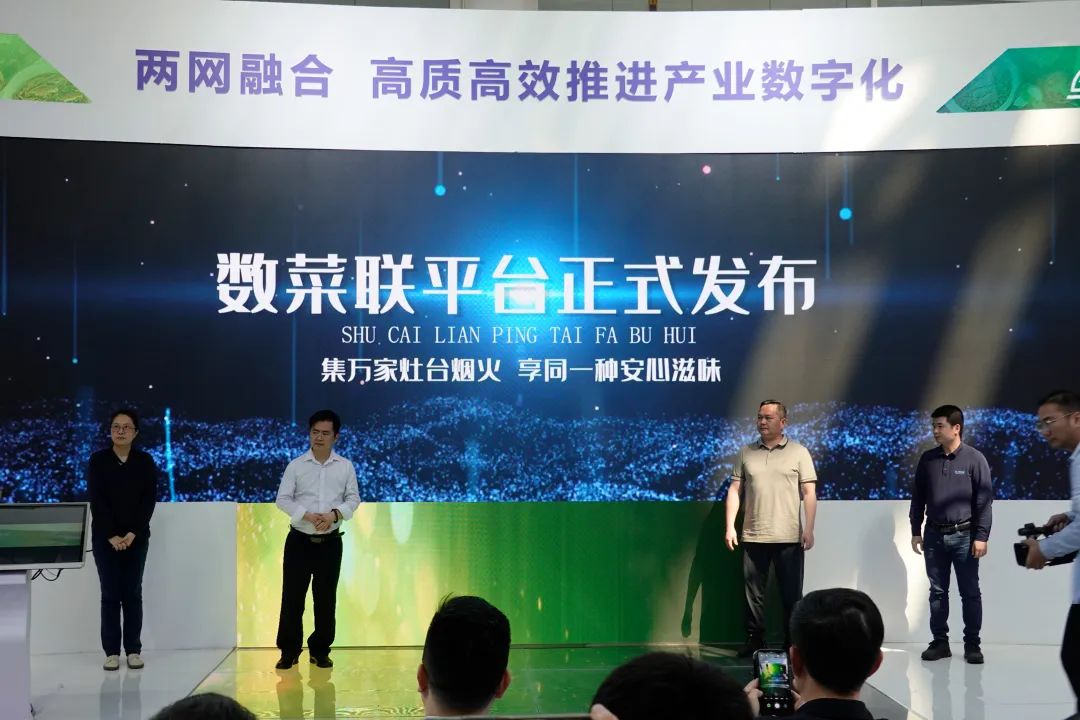 首先,数菜联总经理宋高烽、福建农林大学食品科学学院院长助理方婷教授、福建省预制菜协会秘书长陈至福、福建省供销云厨餐饮管理有限公司董事张永华,共同开启仪式,正式发布数菜联平台。